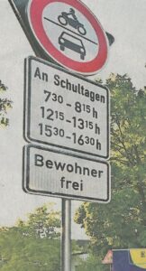 Der Schutz unserer Kinder geht vor! Deshalb ist während der Stoßzeiten morgens, mittags und abends die Einfahrt in die Liegnitzer Straße verboten.